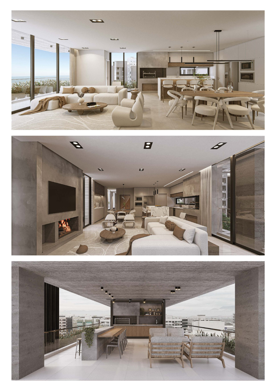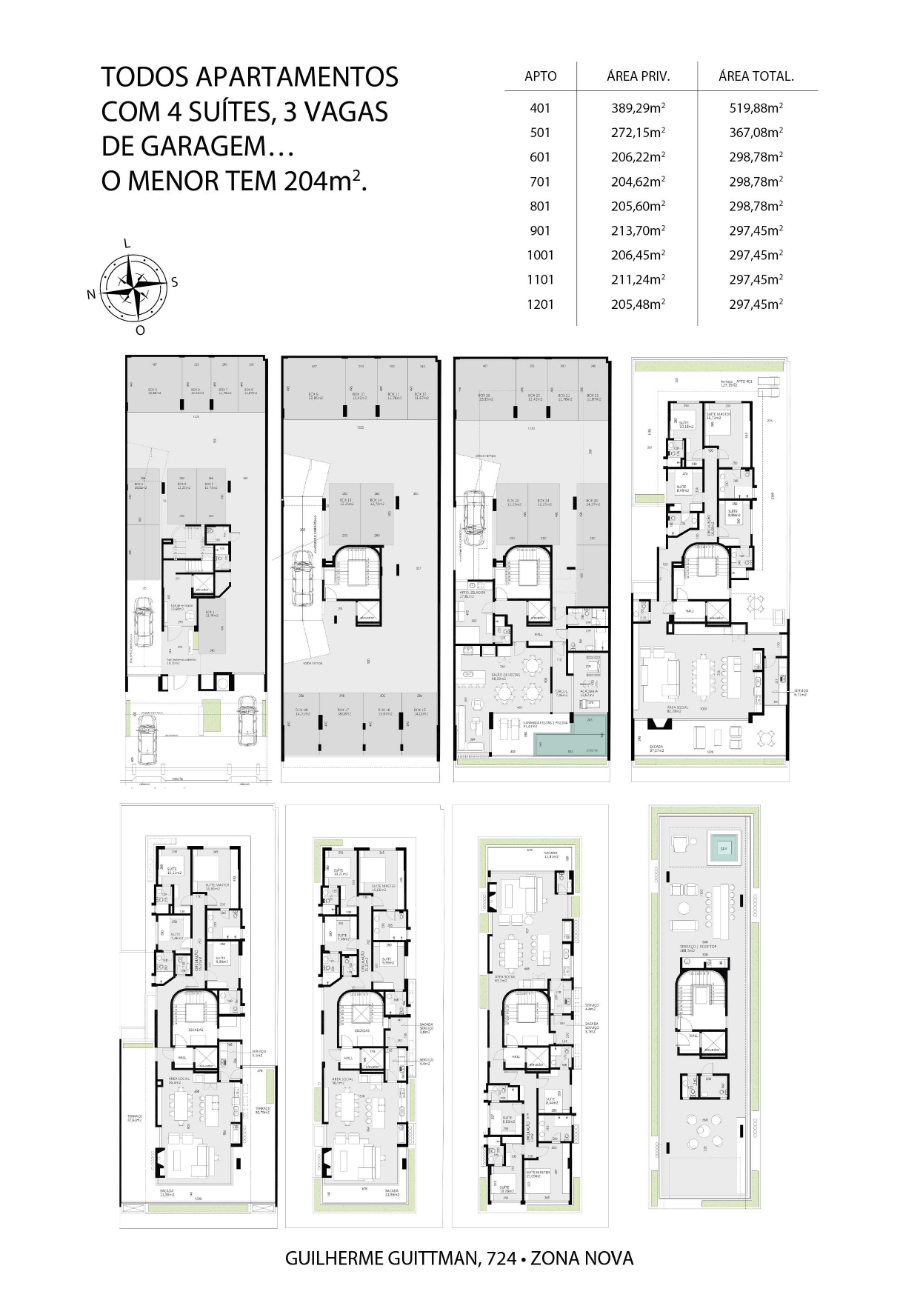 Todos os apartamentos dispõem de 4 suítes e 3 vagas de garagem.