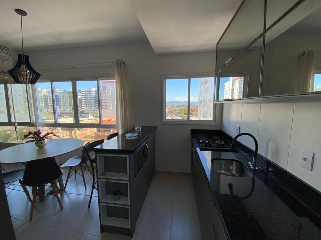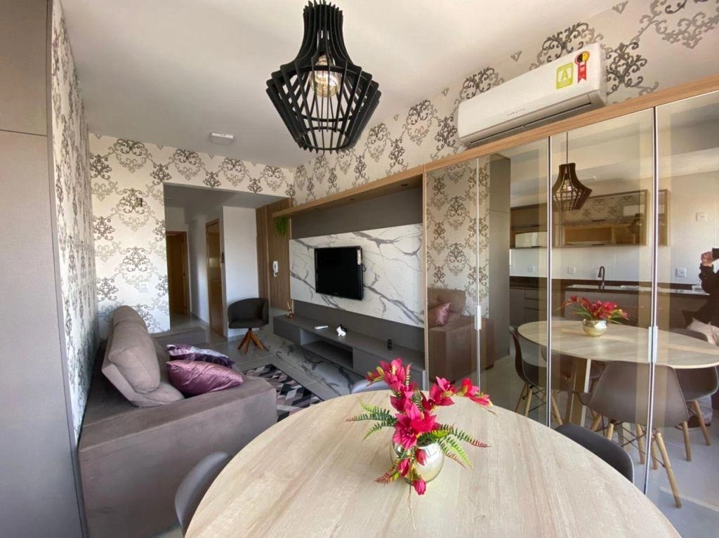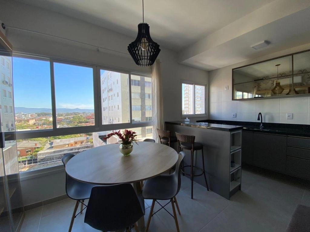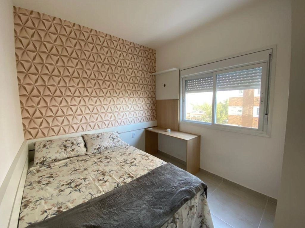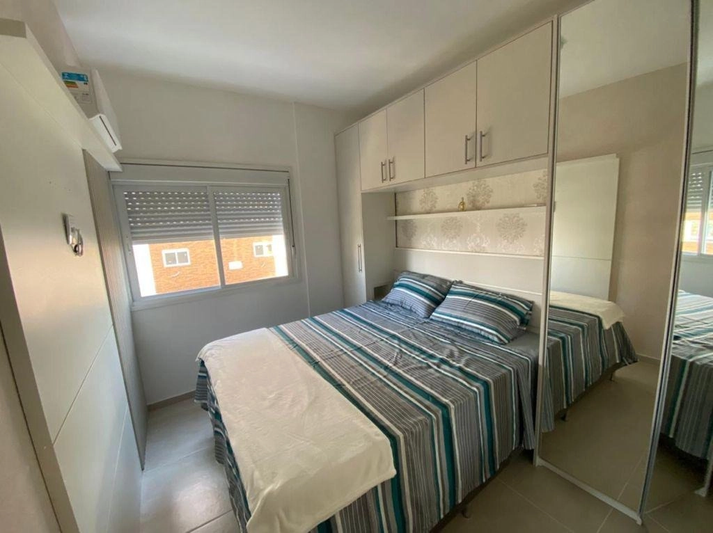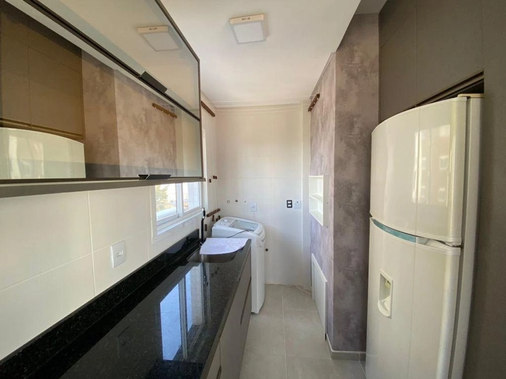 Apartamento 02 dormitórios, sendo 01 suíte, banheiro social, living em dois ambientes, sacada de frente integrada ao living, vista para a rua, churrasqueira na sacada, área de serviço separada, cozinha com balcão americano, box de estacionamento para 01 carro. Equipado, mobiliado e pronto para ocupação imediata.