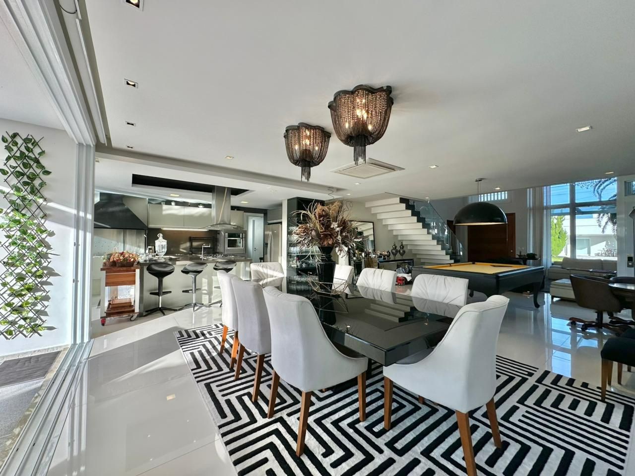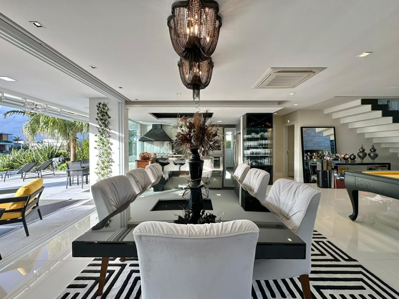 Totalmente mobiliada e decorada, a residência se destaca pelo pé-direito duplo, que proporciona uma sensação ampliada de espaço e sofisticação, e pela piscina aquecida, ideal para momentos de lazer e contemplação à beira do lago.
