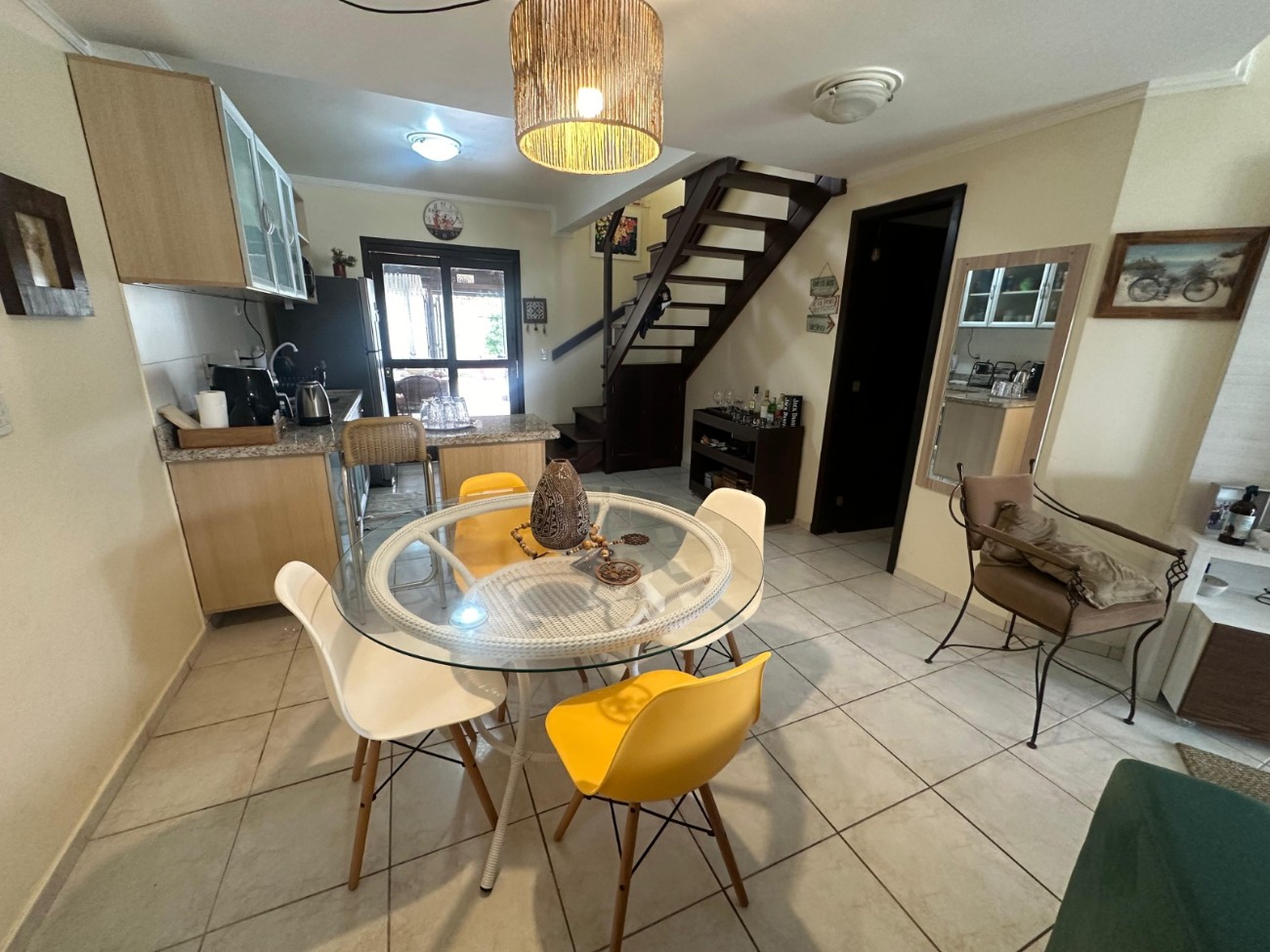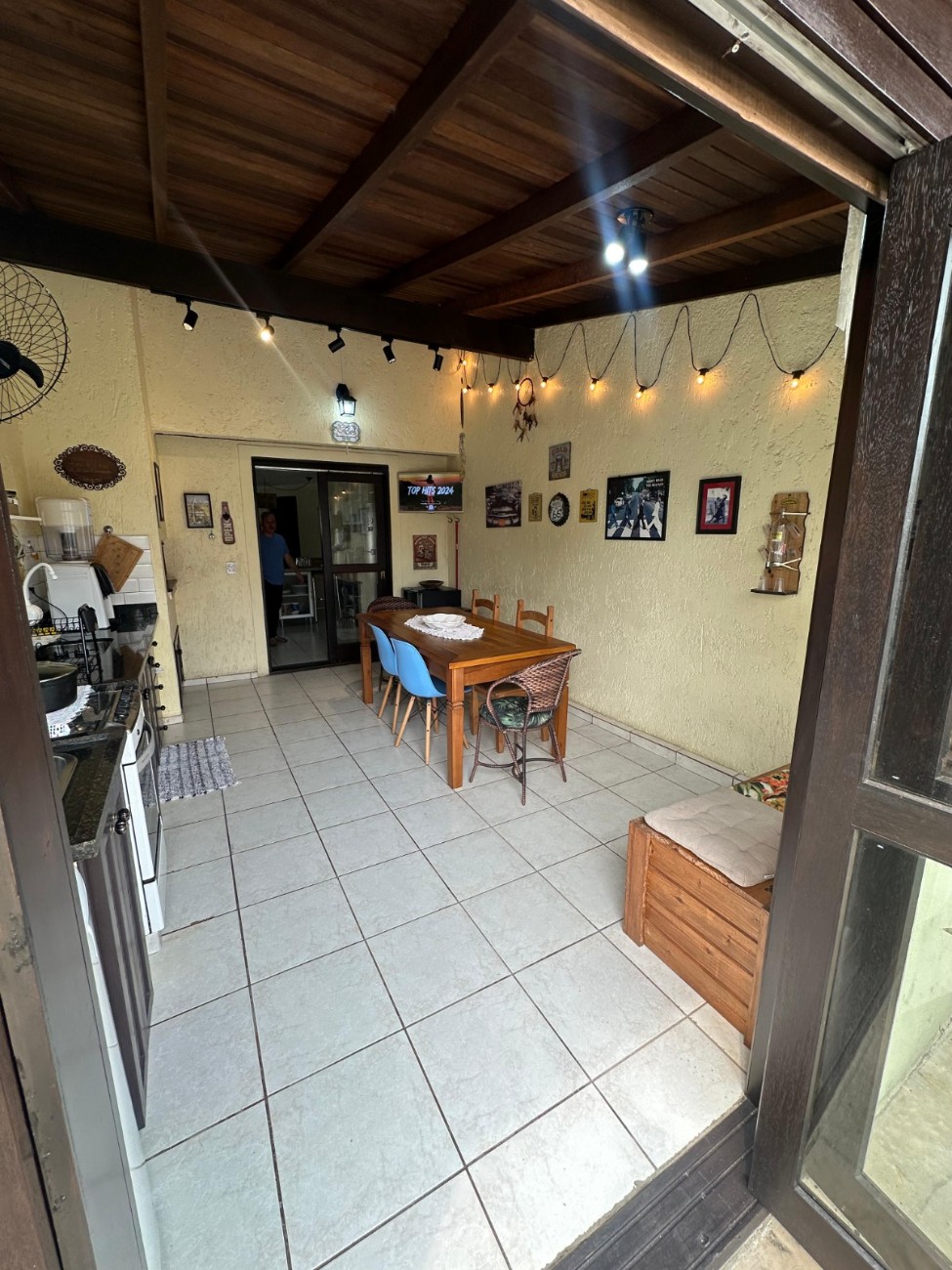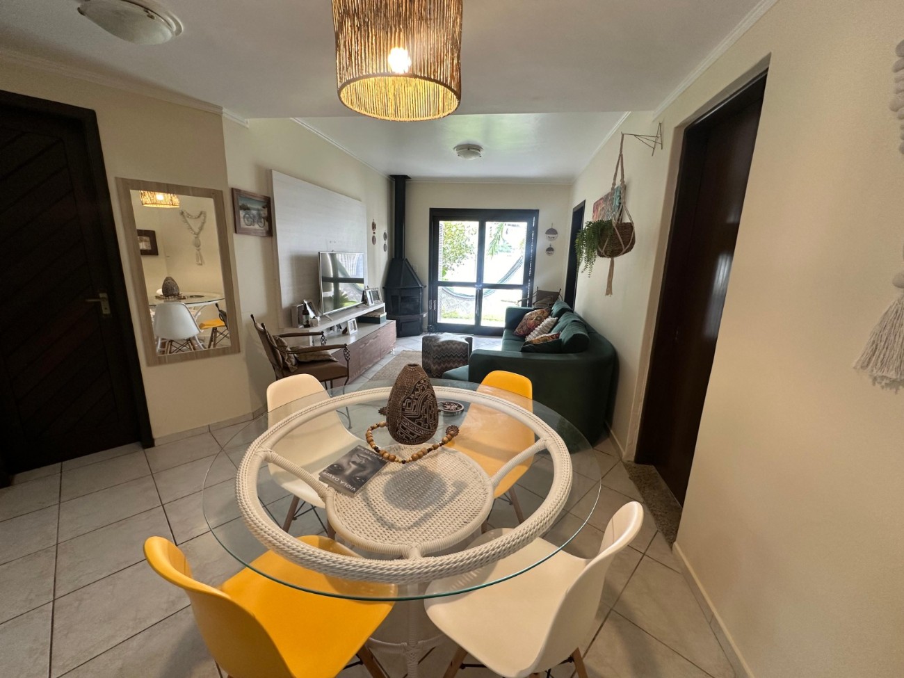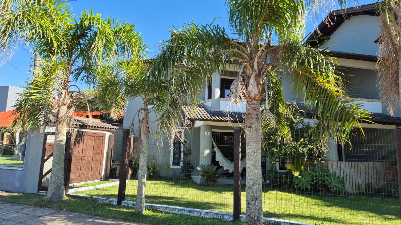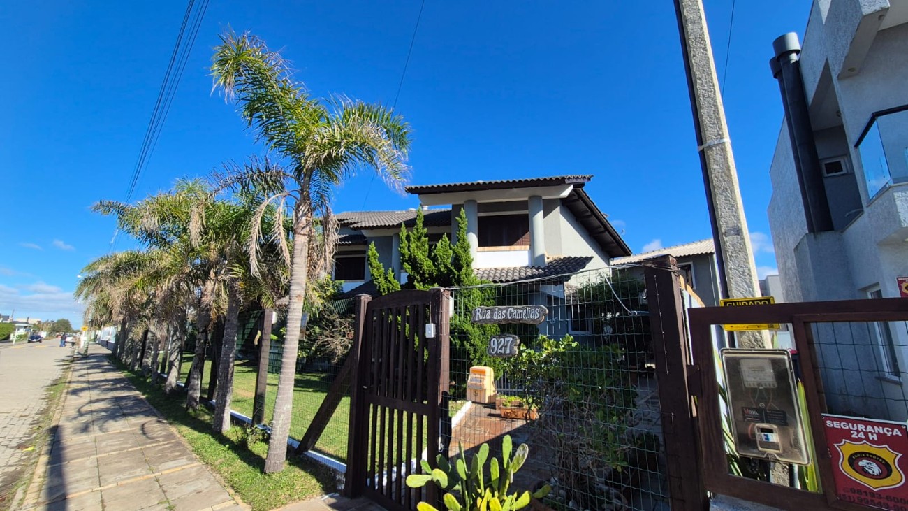 Casa mobiliada e decorada em Condomínio fechado a 3 quadras do mar com 4 dormitórios, todos os quartos com cama casal e armários, sendo uma suíte com sacada com armário, cama queen, rach e TV, sala de estar com lareira sofá, reck com TV, cadeiras, sala jantar, com mesa e cadeiras, bar, cozinha com geladeira, fogão micro ondas, sala de churrasqueira com tampo de granito, lavanderia, mesa com 6 cadeiras, TV, dois ar condicionados, dois estacionamentos, Infra de salão de festas, piscina, campo esportes, (no valor do condomínio esta incluído, uso do salão de festas, jardinagem, manutenção piscina, internet, agua e vigilância 24hs).