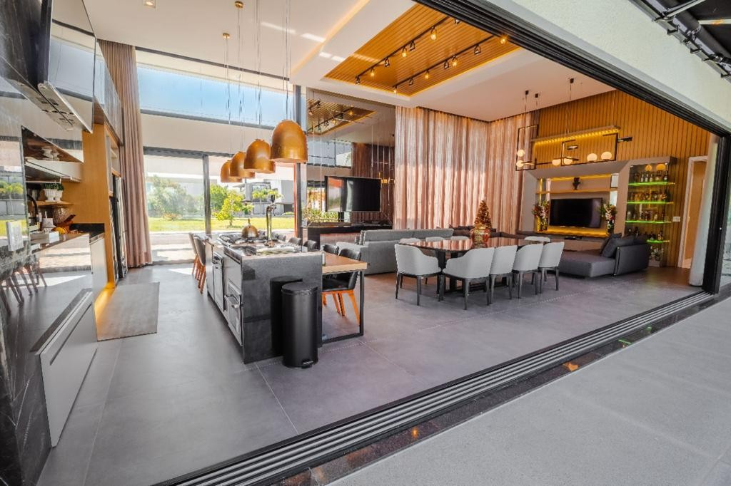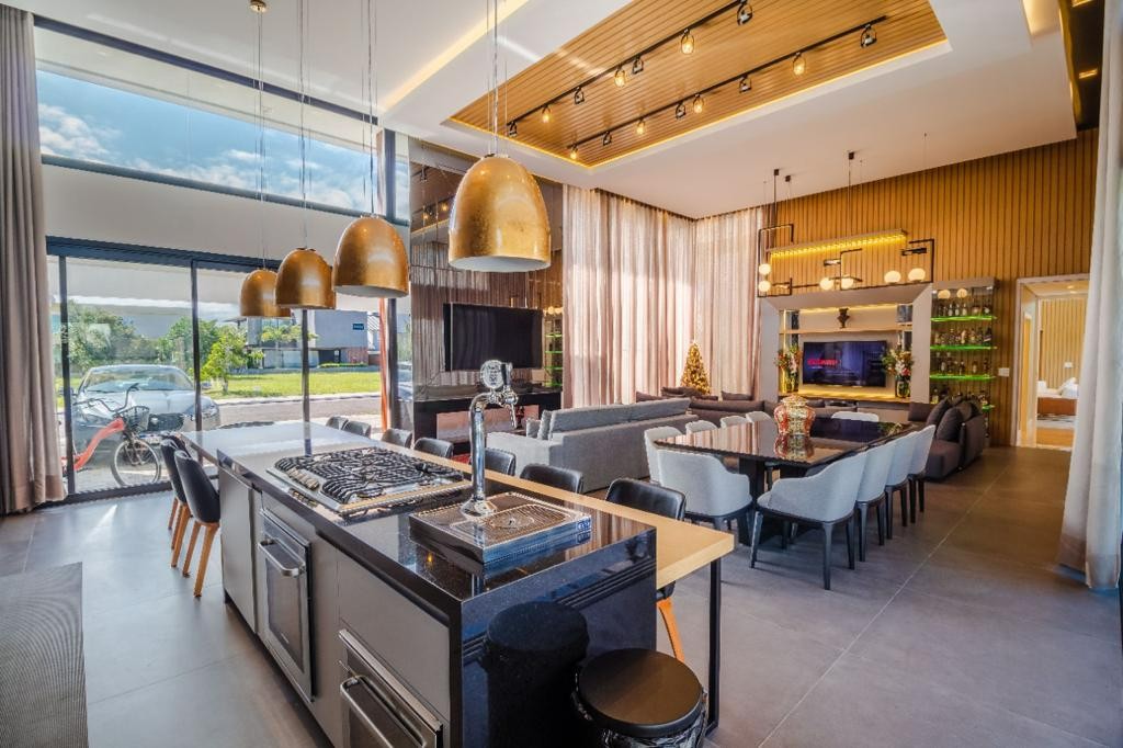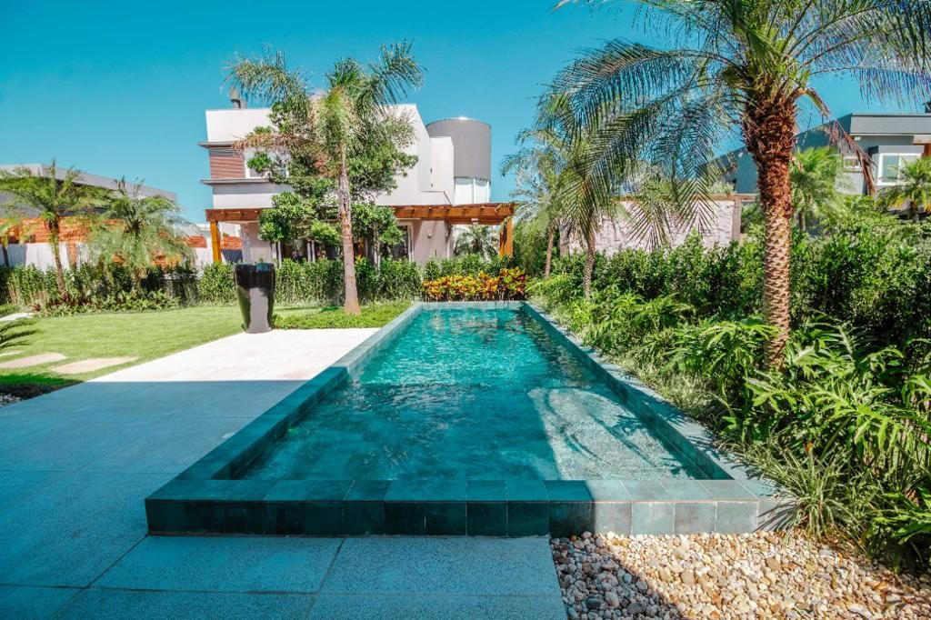 Mansão finamente mobiliada e decorada, sobre 2 terrenos, no Condomínio Velas da Marina em Capão da Canoa!!! Casa térrea composta por 4 suítes (sendo 1 suíte máster com banheira de hidromassagem), amplo living 3 ambientes com pé direito duplo, lareira, lavabo duplo, cozinha americana, salão gourmet, churrasqueira rotatória, chopeira, área de serviços e abrigo para 2 veículos. Casa com 450m², alto luxo, persianas automatizas, metais e pedras nobres, lindo paisagismo, piscina de concreto. Condomínio de luxo as margens da Lagoa dos Quadros, com infraestrutura de lazer completa, toda segurança, conforto e comodidade para você e sua família desfrutarem momentos inesquecíveis junto a natureza exuberante da Lagoa e pertinho da praia em Capão da Canoa! Agende sua visita agora mesmo!!!
