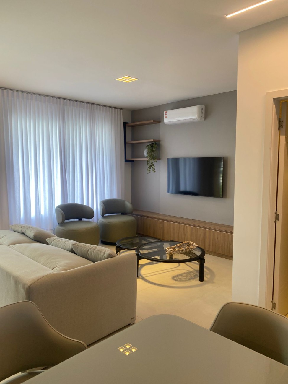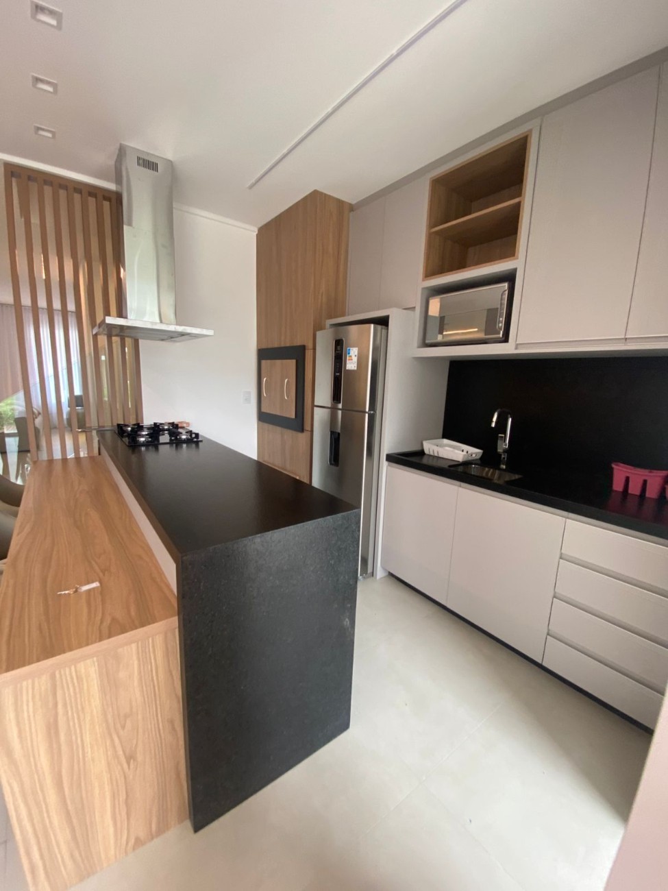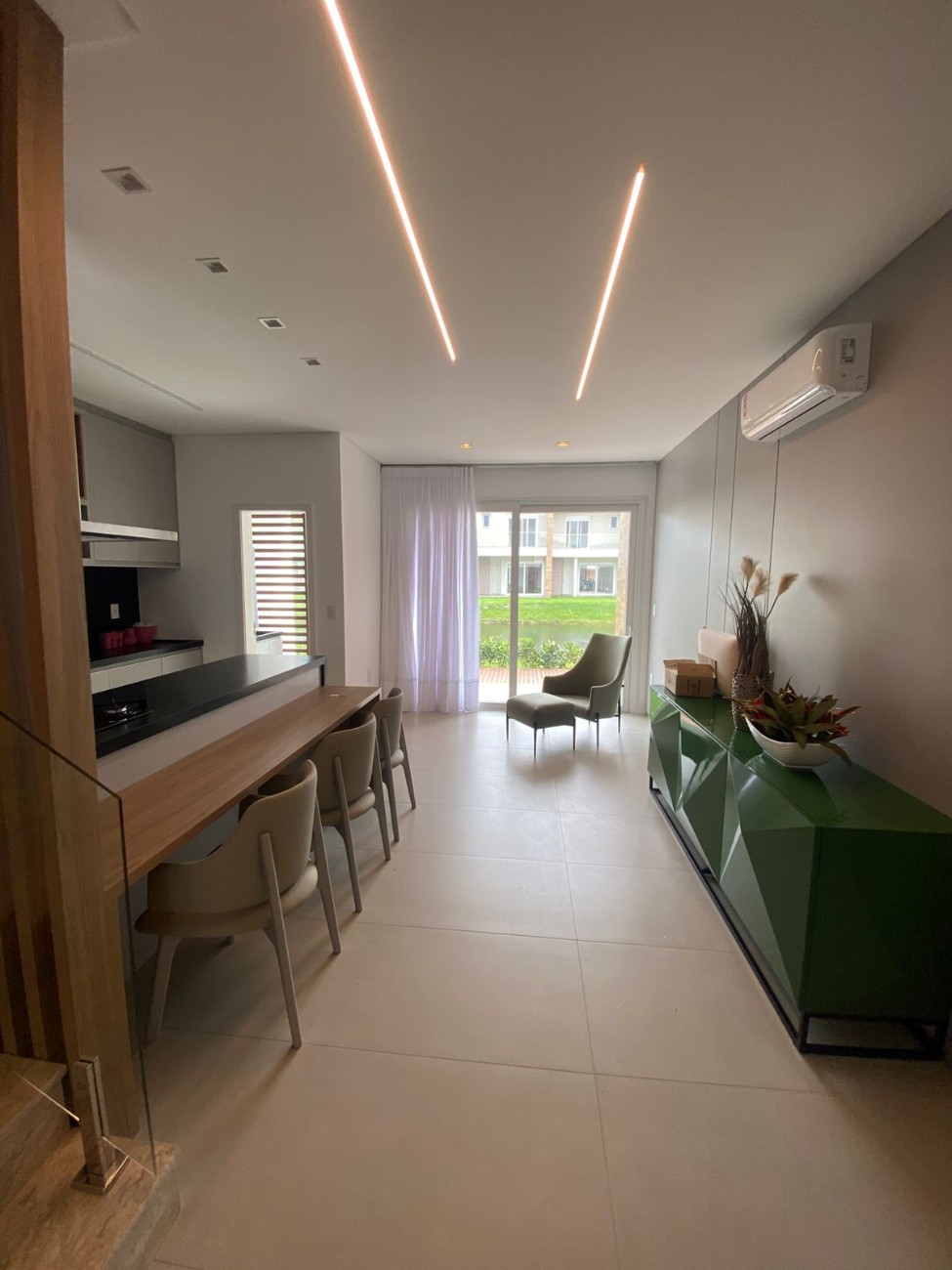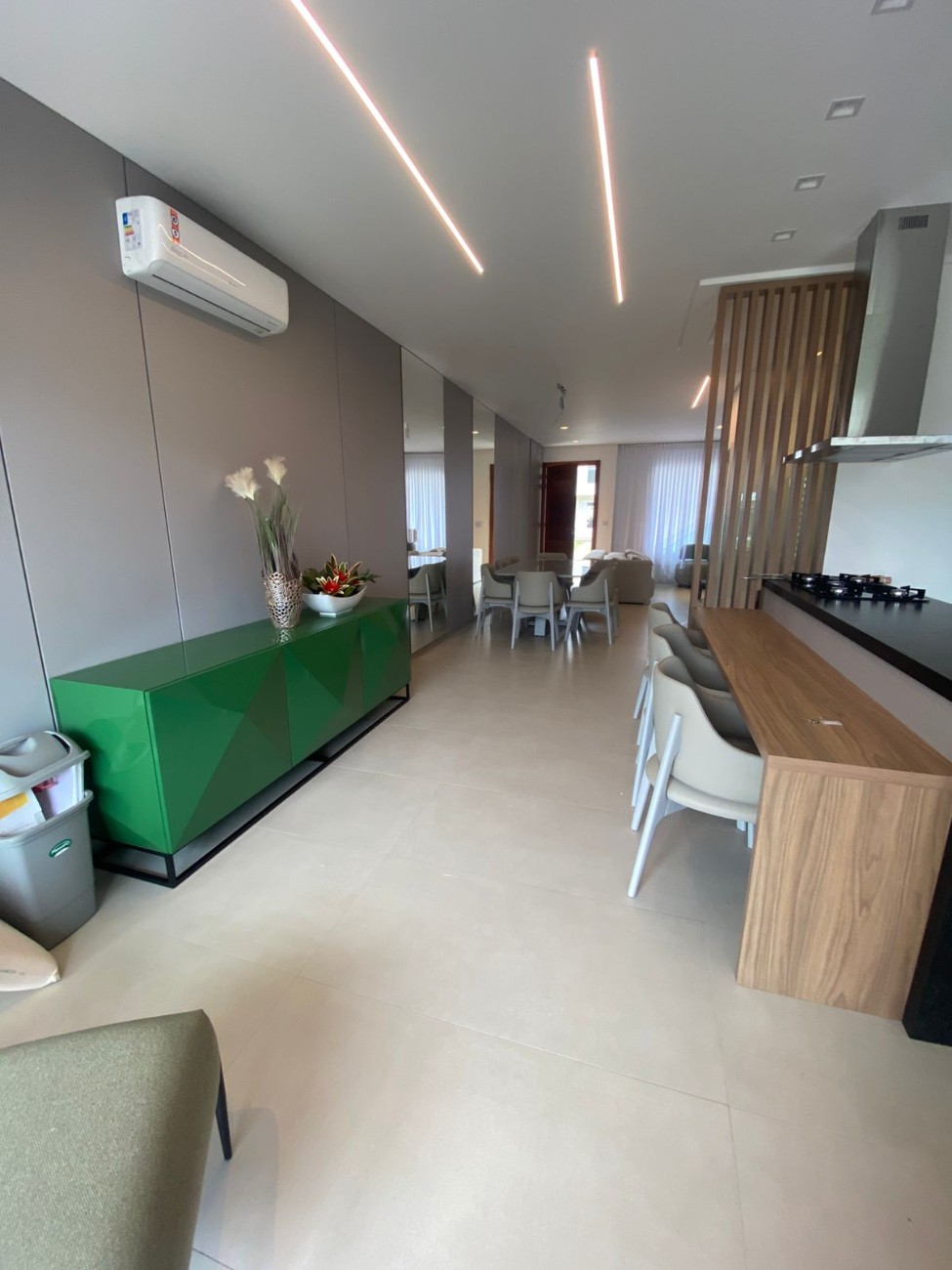 - Amplo living com 3 ambientes integrados (estar, jantar e cozinha)