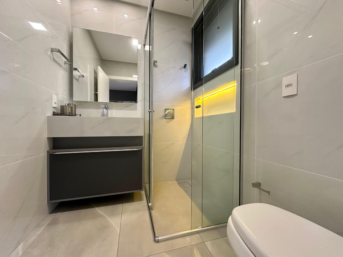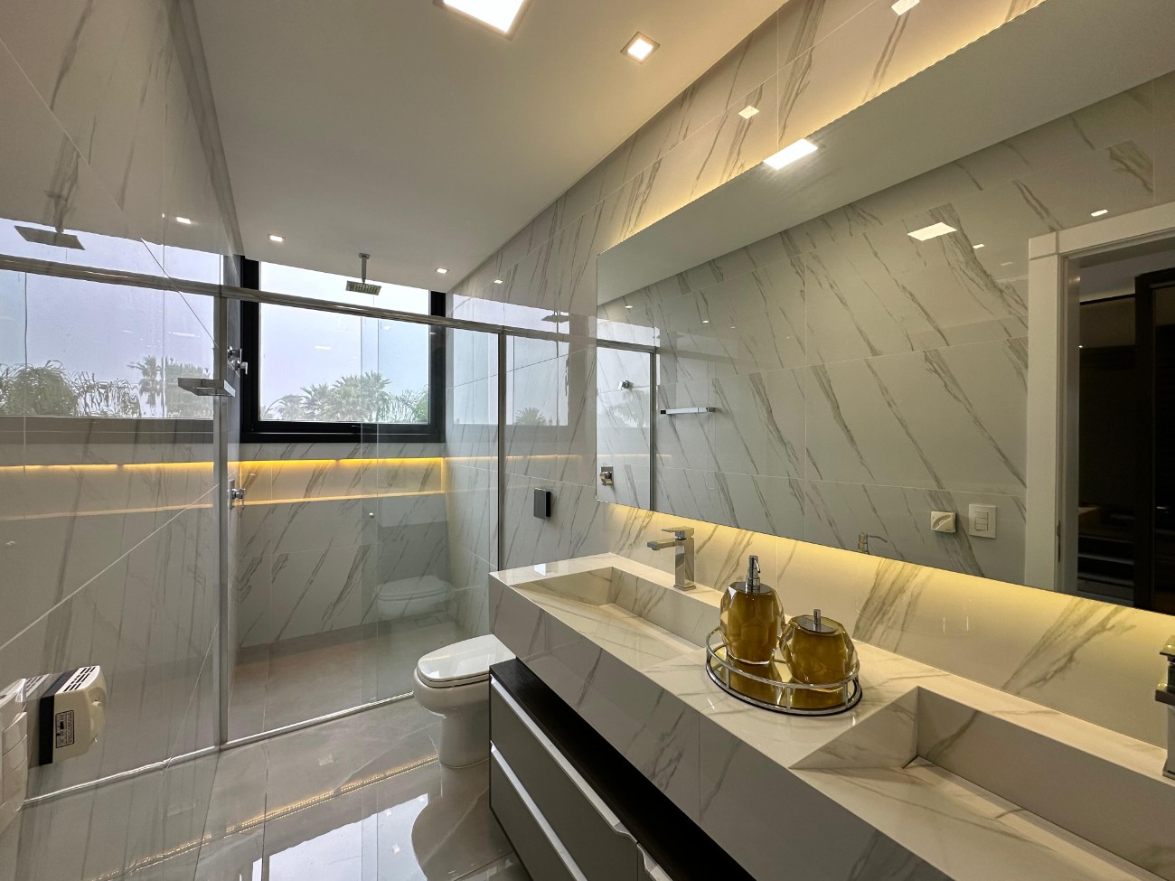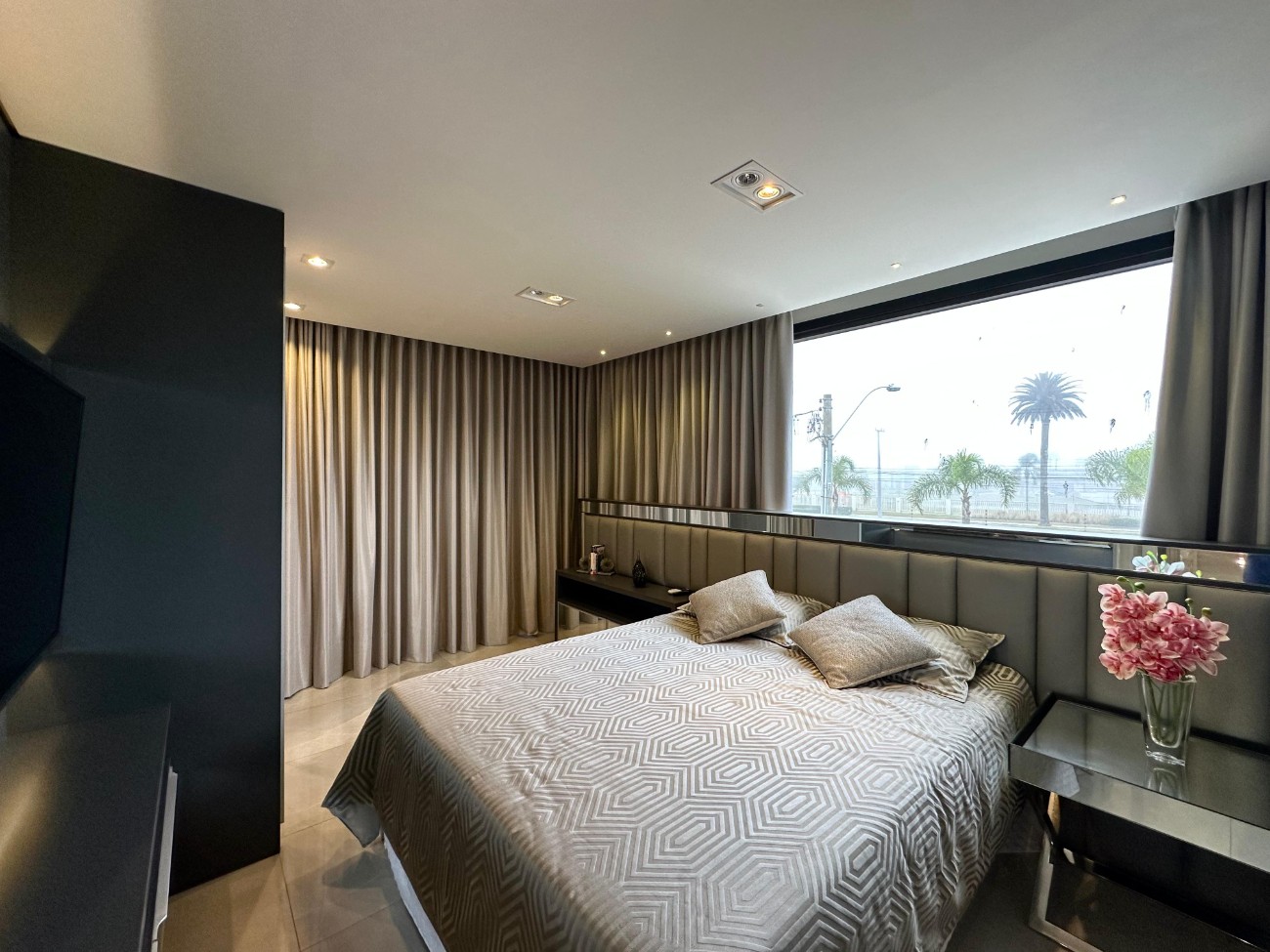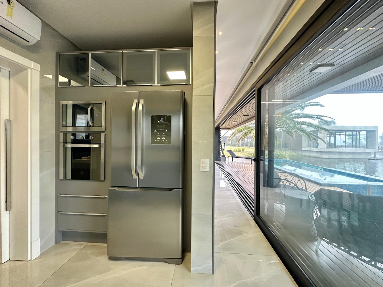 Esta ampla mansão de 477 m² privativos oferece uma vista incrível para uma área verde. Com estilo moderno, possui estacionamento para dois carros, 5 suítes (sendo uma térrea) e um living com cinco ambientes. Destaques incluem sala de cinema, cozinha gourmet, automação, piso aquecido e elevador para três pessoas. O espaço externo conta com pergolado, deck suspenso e piscina com frente em vidro, além de um pátio lateral que se conecta a 100 m² de natureza. Um verdadeiro refúgio de luxo e conforto!