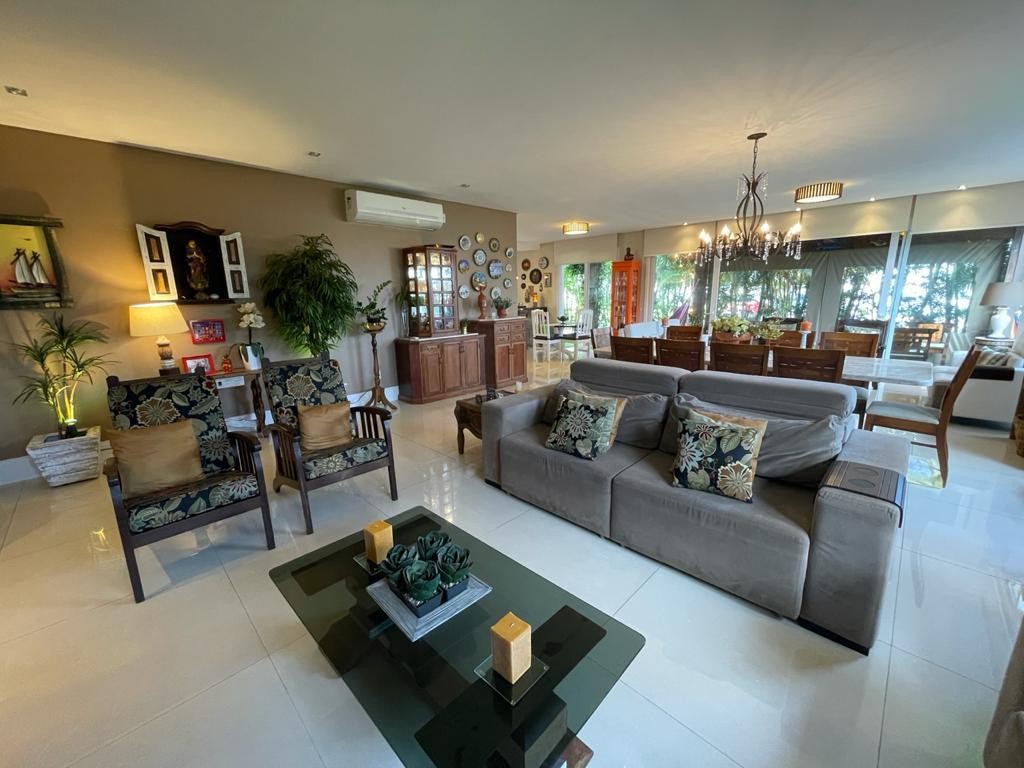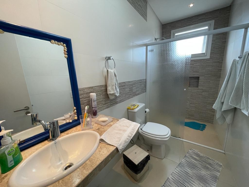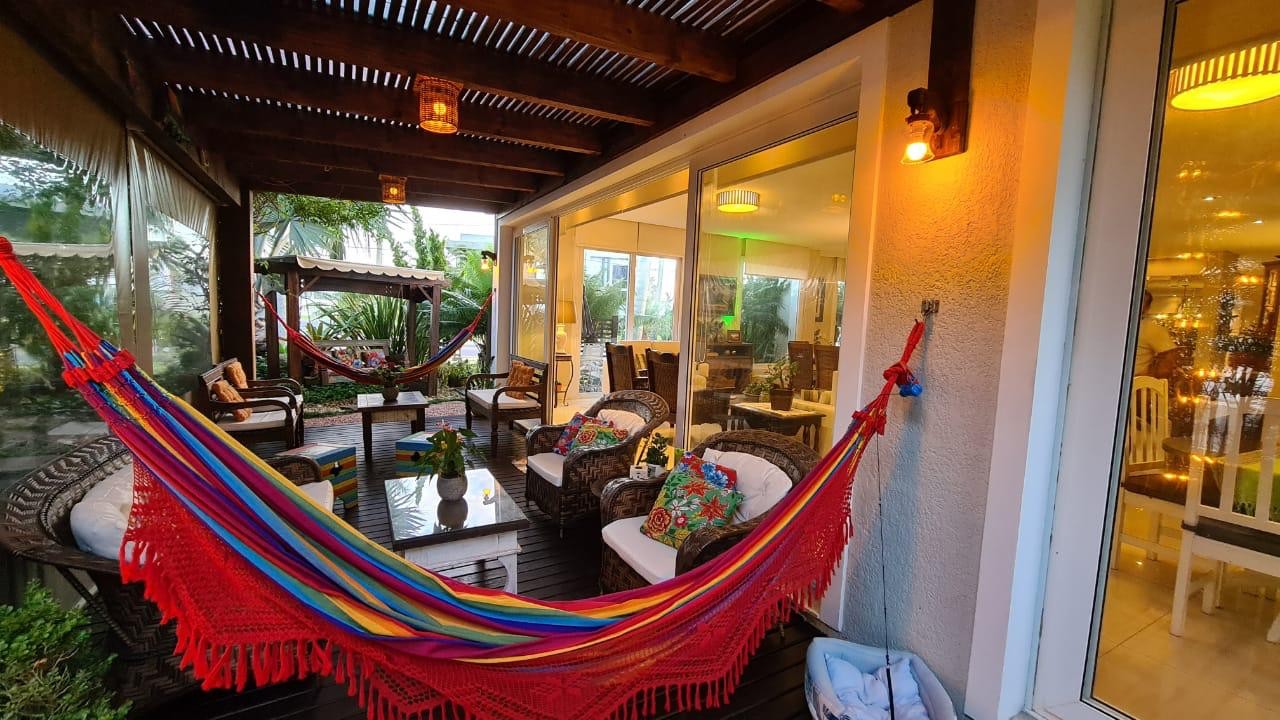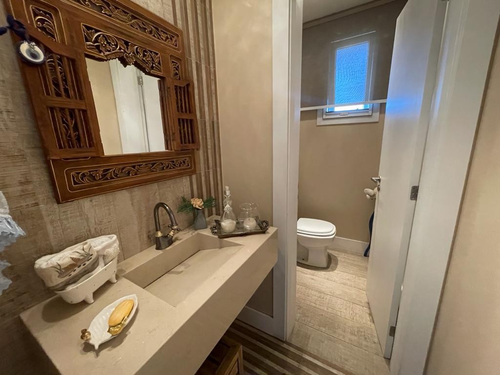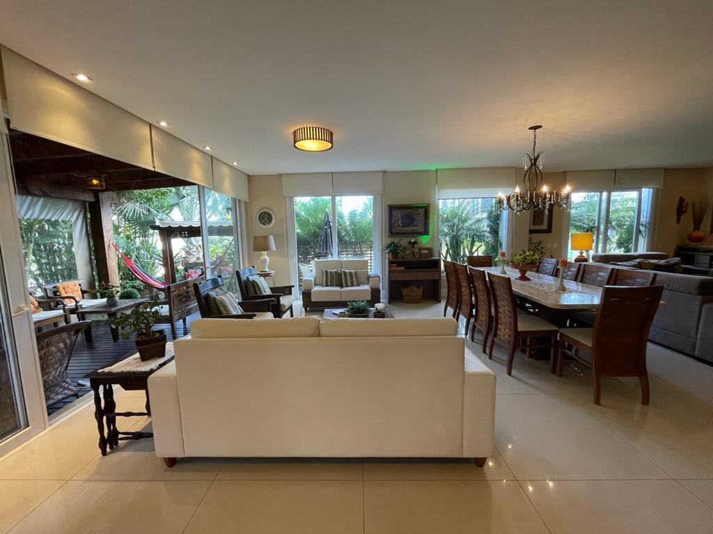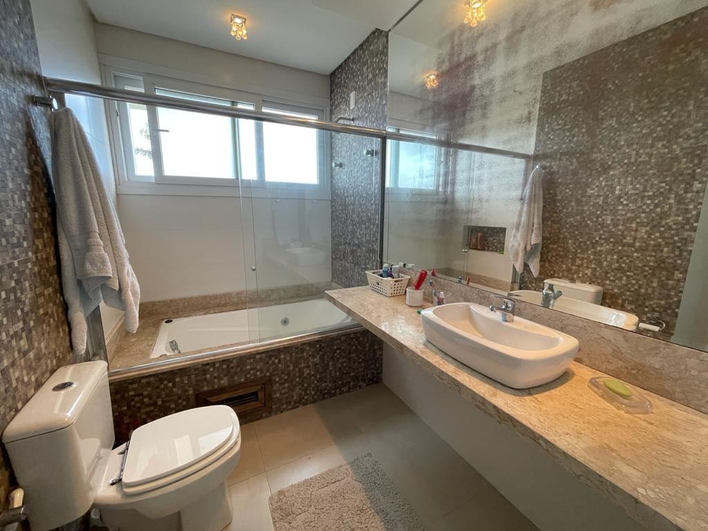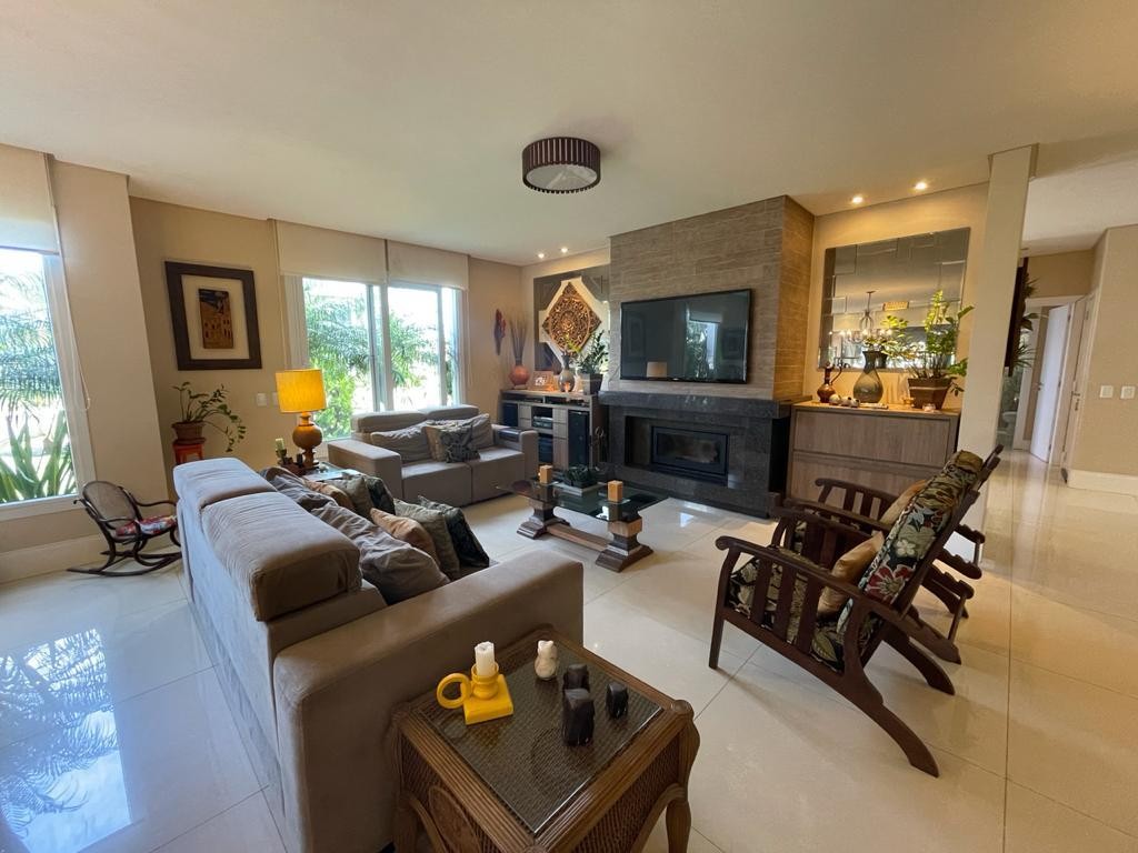 sobrado com mais de 500m², 6 suítes sociais, sendo 1 térrea e 3 com hidromassagem e sacada. Suíte de serviço e dependência completa, depósito para bicicletas, terraço com SPA para 6 pessoas e churrasqueira. Split na sala e nos dormitórios, lareira de alta performance e lareira elétrica.